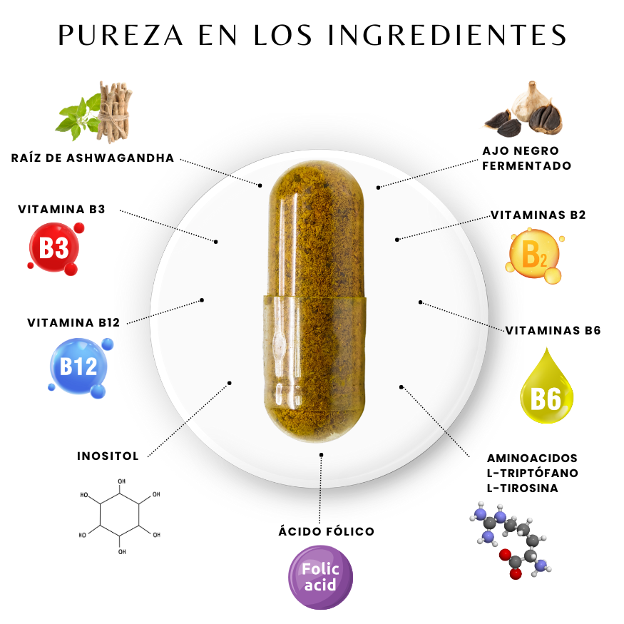 Adaptógeno natural que ayuda a reducir el estrés, mejora la calidad del sueño, apoya la función cognitiva y puede incrementar los niveles de energía. También contribuye al equilibrio hormonal y la resistencia física.
